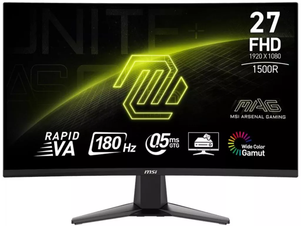 Диагональ 27" | Изогнутый экран | Full HD (1920x1080) | Стандартный (16:9) | Тип матрицы VA | Частота обновления экрана 180 Hz | Время реакции 0.5 мс | Яркость 250 кд/м2 | Интерфейсы HDMI x2, DisplayPort, Выход для наушников | Возможность наклона | Черный