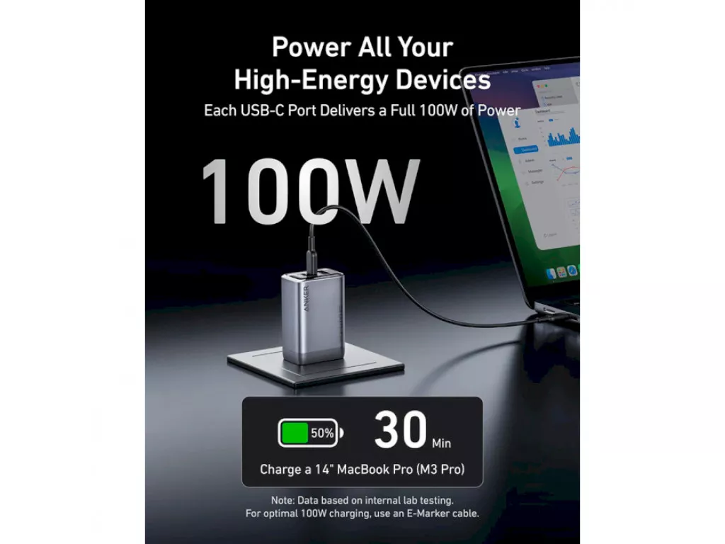| Параметры заряда | ➣ USB-C1 100 Вт ➣ USB-C2 100 Вт ➣ USB-A 22.5 Вт ➣ Максимальная мощность 100 Вт |