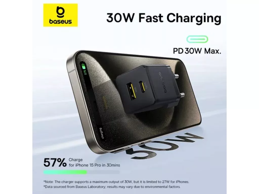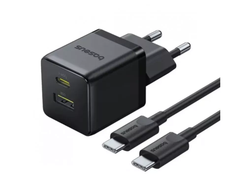 Порт зарядки: USB Type-C, USB Type-A | Мощность 30 Вт | Двойной выход – Type-C (30 Вт) + USB-A (до 30 Вт) для удобной зарядки двух устройств | Быстрая зарядка – поддерживает Power Delivery (PD) 3.0, Quick Charge (QC) 4.0+, PPS, SCP, AFC | Компактный размер – идеально подходит для путешествий и повседневного использования | Умный чип защиты – предотвращает перегрев, перенапряжение и короткое замыкание | Универсальная совместимость – подзаряжает смартфоны, планшеты, ноутбуки, беспроводные наушники и другие гаджеты | Кабель высокого качества – Type-C to Type-C 60 Вт (1 м) для надежной и быстрой передачи энергии | Черный