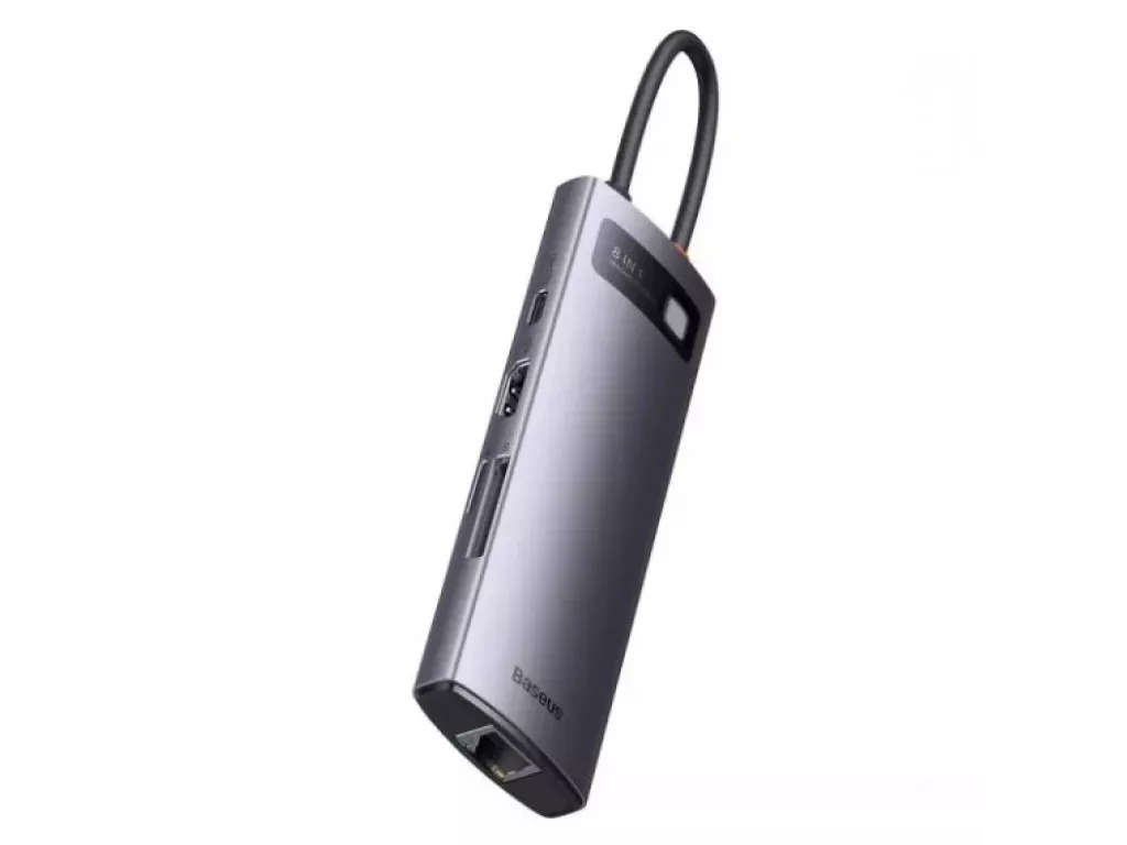 Адаптер для подключения к порту USB Type-C | Слоты расширения 3xUSB 3.1 Type-A, 1xUSB Type-C 2.0, SD/TF, MicroSD, RJ45, HDMI | Металлический корпус | Серый
