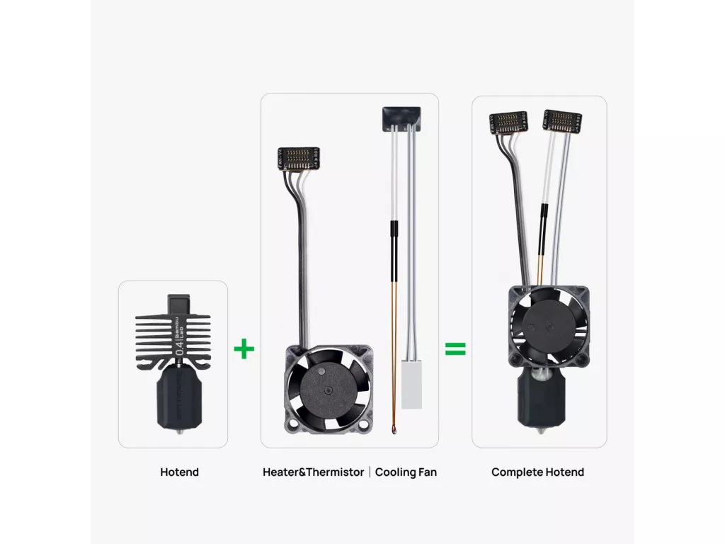 Комплектний хотенд (hotend) | Сумісність: Bambu Lab P1 | Діаметр сопла 0.6 мм | Матеріал: Hardened Steel | Максимальна температура друку 320 °С | Довжина 47.3 мм | Вища швидкість та можливість друку високопродуктивними нитками з деяким зниженням дозволу | Вага упаковки 40 г | Розмір упаковки 190 x 70 x 50 мм | У комплект входить вентилятор, термістор і керамічний нагрівач