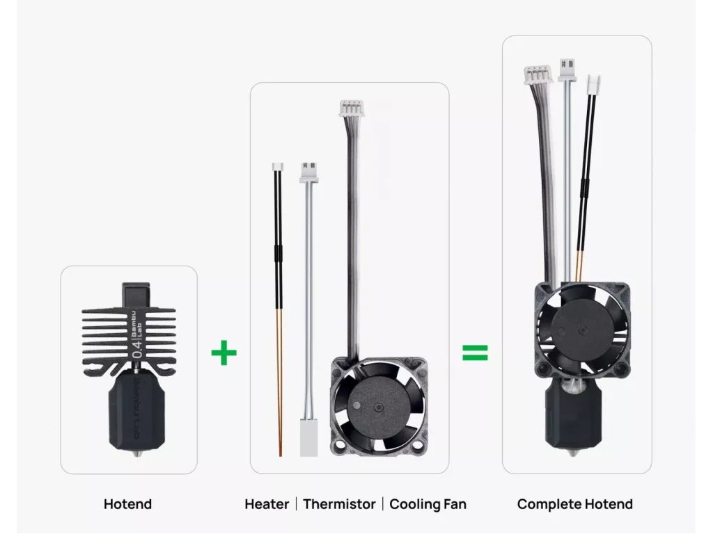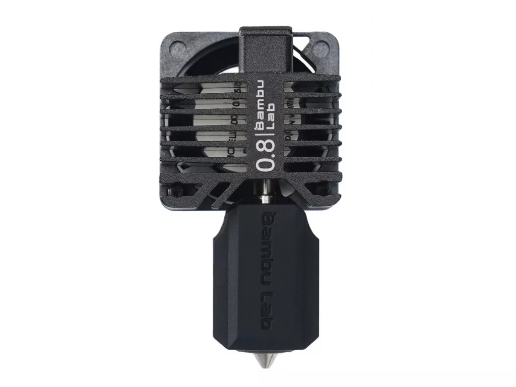 Особливості | Головка hotend від Bambu Lab, сумісна з принтерами серії X1. Оснащений соплом із загартованої сталі діаметром 0.8 мм, він гарантує точний процес друку. У комплект входить вентилятор, термістор і керамічний нагрівач. |