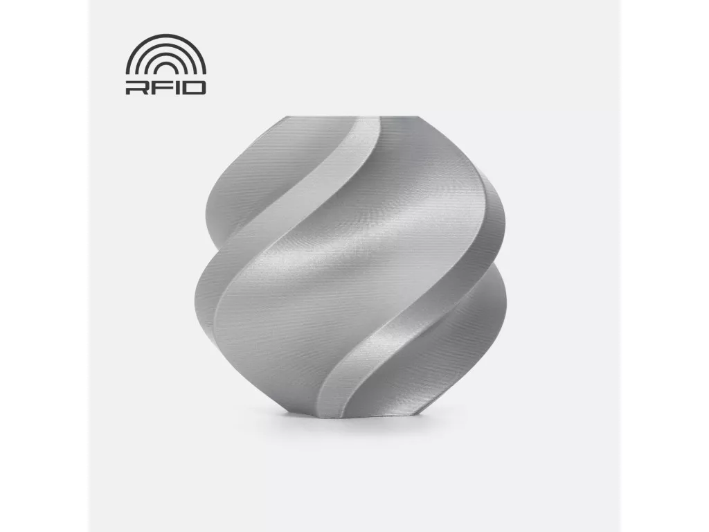 Пластик/філамент для 3D-принтера | Без котушки | Сумісний з AMS та AMS lite | Діаметр нитки 1.75 мм +/- 0.03 мм | Гладка поверхня | Біорозкладний | Легко друкувати та підходить для початківців | Вага 1 кг | Сріблястий