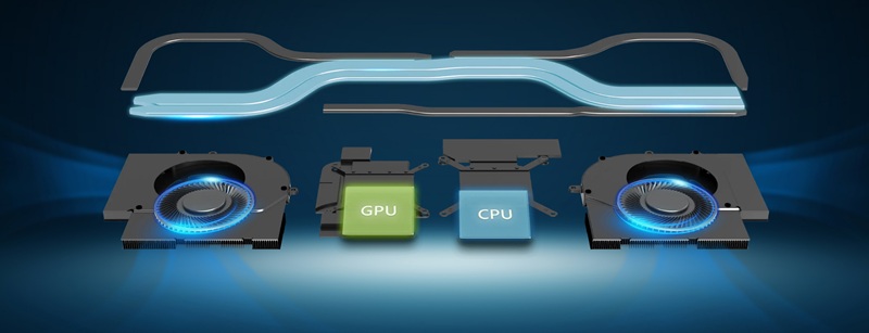 Дизайн Shared-Pipe з об'єднаними тепловими трубками CPU та GPU для покращення охолодження при екстремальних навантаженнях. MSI Cooler Boost 5 з двома вентиляторами та п'ятьма тепловими трубками забезпечує оптимальне охолодження для безперервних ігрових сесій.
