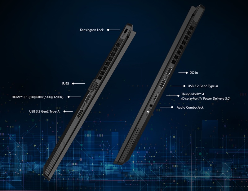 Зовнішні порти | ➣ Thunderbolt 4 (DisplayPort/ Power Delivery 3.0) ➣ 2x Type-A USB3.2 Gen2 ➣ HDMI 2.1 (8K@60Hz / 4K@120Hz) ➣ Комбінований аудіороз'єм |